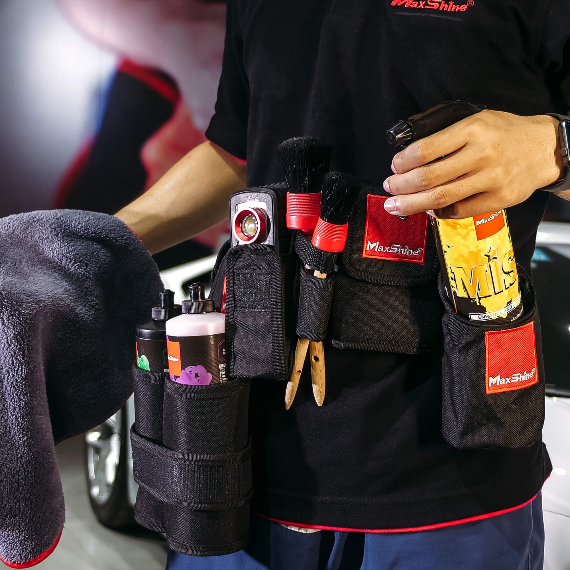 Stworzony z myślą o profesjonalistach i pasjonatach detailingu, pas narzędziowy Maxshine pozwala mieć wszystkie niezbędne akcesoria zawsze pod ręką.