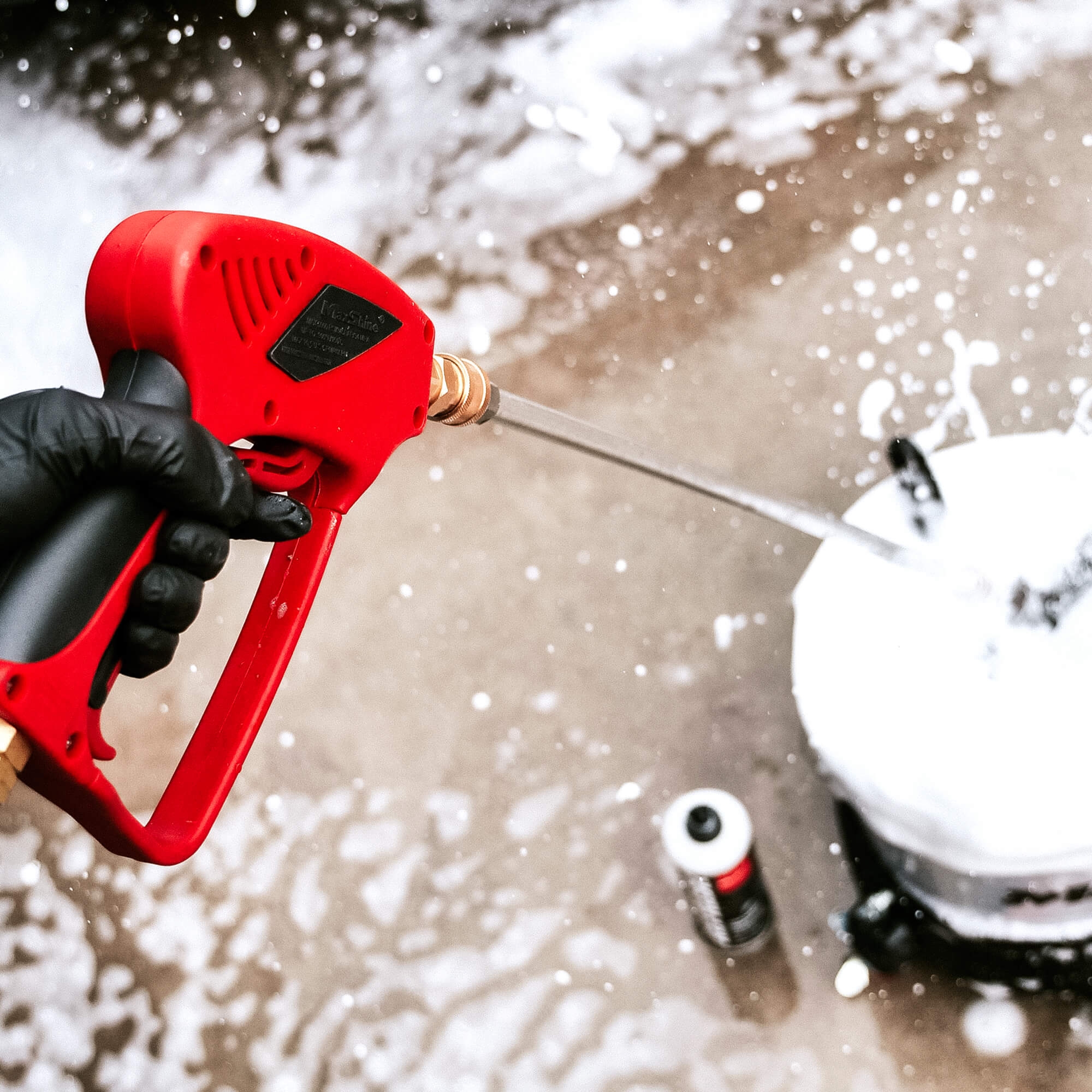 Pistolet pianowy niskociśnieniowy Maxshine LPG001 łączy detergent, powietrze oraz bieżącą wodę, tworząc wyjątkowo gęstą i obfitą pianę! Podłącz go do węża ogrodowego i skutecznie usuwaj zanieczyszczenia ścierające, które mogą powodować rysy i zawirowania na lakierze.